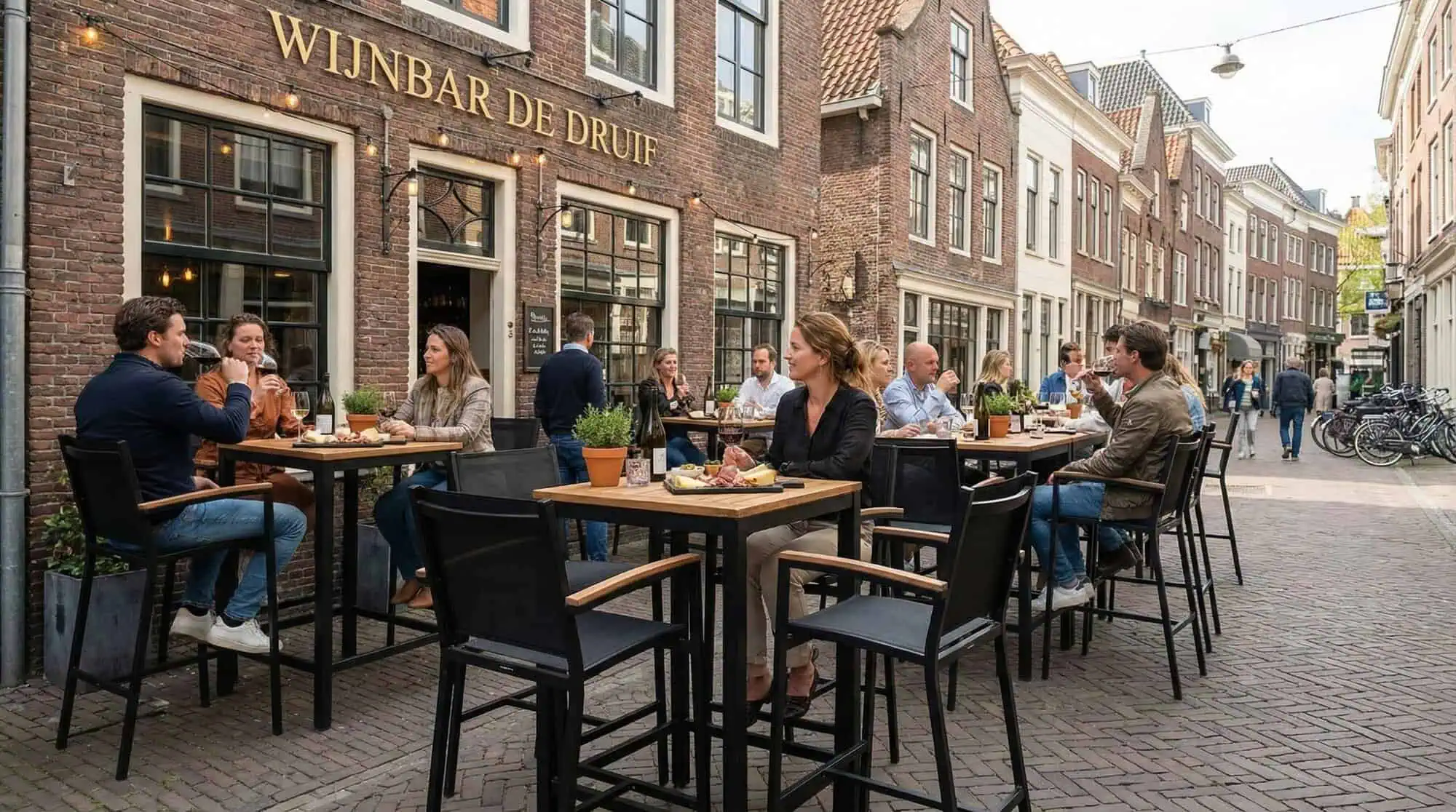 Le tabouret de bar Textileen hospitality (patio) Sunny black est également disponible comme chaise de patio.